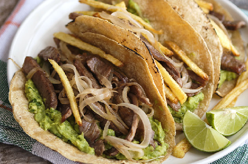 Tacos de bistec de r..>